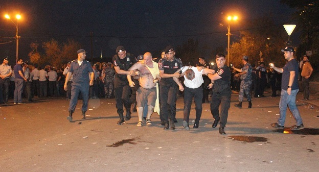 Как писал "Кавказский узел", депутаты от фракции "Гражданский договор" не явились на объявленное оппозицией внеочередное заседание парламента по вопросу будущего Нагорного Карабаха. Участники акций протеста отправились к зданию правительства и правительственным дачам, чтобы потребовать объяснений о причинах срыва заседания. Силовики применили светошумовые гранаты против сторонников оппозиции у правительственной резиденции Армении, начались задержания. Во время столкновения с полицией пострадали 42 человека, в том числе 22 силовика.