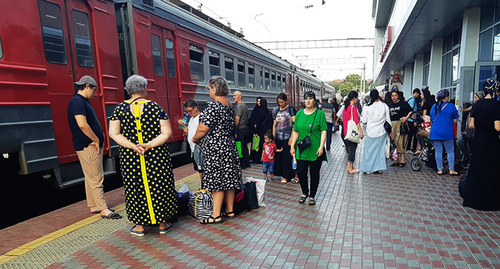 Корреспондент "Кавказского узла" побывал 2 августа на железнодорожном вокзале Махачкалы, перед отправлением последней электрички в Дербент, следующей по расписанию в 17.43 мск. На перроне в ожидании электрички находилось около 200 человек. Электропоезд состоял из 4 вагонов стандартной комплектации. Посадка пассажиров началась примерно за 15 минут до отхода поезда. Давки и конфликтов во время посадки людей не было. В вагонах всем хватило сидячих мест, передает корреспондент «Кавказского узла».