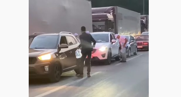 Сотрудники частной компании раздают воду водителям и пассажирам машин, пересекающих российско-грузинскую границу. Для пересечения границы приходится много часов стоять в пробке, указали пользователи соцсети. Военно-Грузинская дорога функционирует в штатном режиме, заверило МЧС.