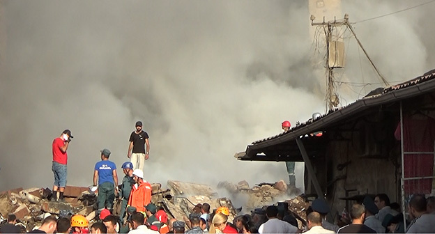 Как писал "Кавказский узел", 14 августа произошел взрыв на складе фейерверков в торговом центре "Сурмалу" в Ереване. После взрыва начался сильный пожар, часть здания обрушилась. Во время взрыва в торговом центре было много людей, рассказали очевидцы. Пропавшими без вести сегодня к 11.00 мск оставались 15 человек.