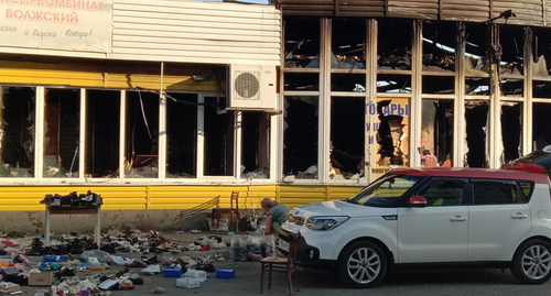 Мужчина выбросил из проема витрины очередную груду обуви, женщина, плача, стала разбирать испорченный огнем товар. Она сказала корреспонденту "Кавказского узла", что была одним из партнеров по бизнесу.