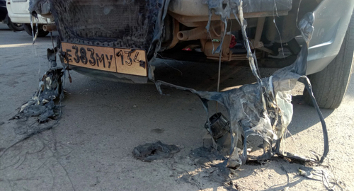 В 50 метрах от места пожарища стоит грузовая газель с оплавленными фарами и треснувшими лобовыми стеклами. С северной стороны - обугленные легковые автомобили и тележки со спекшимися арбузами. По периметру сгоревшего рынка была протянута сигнальная лента.