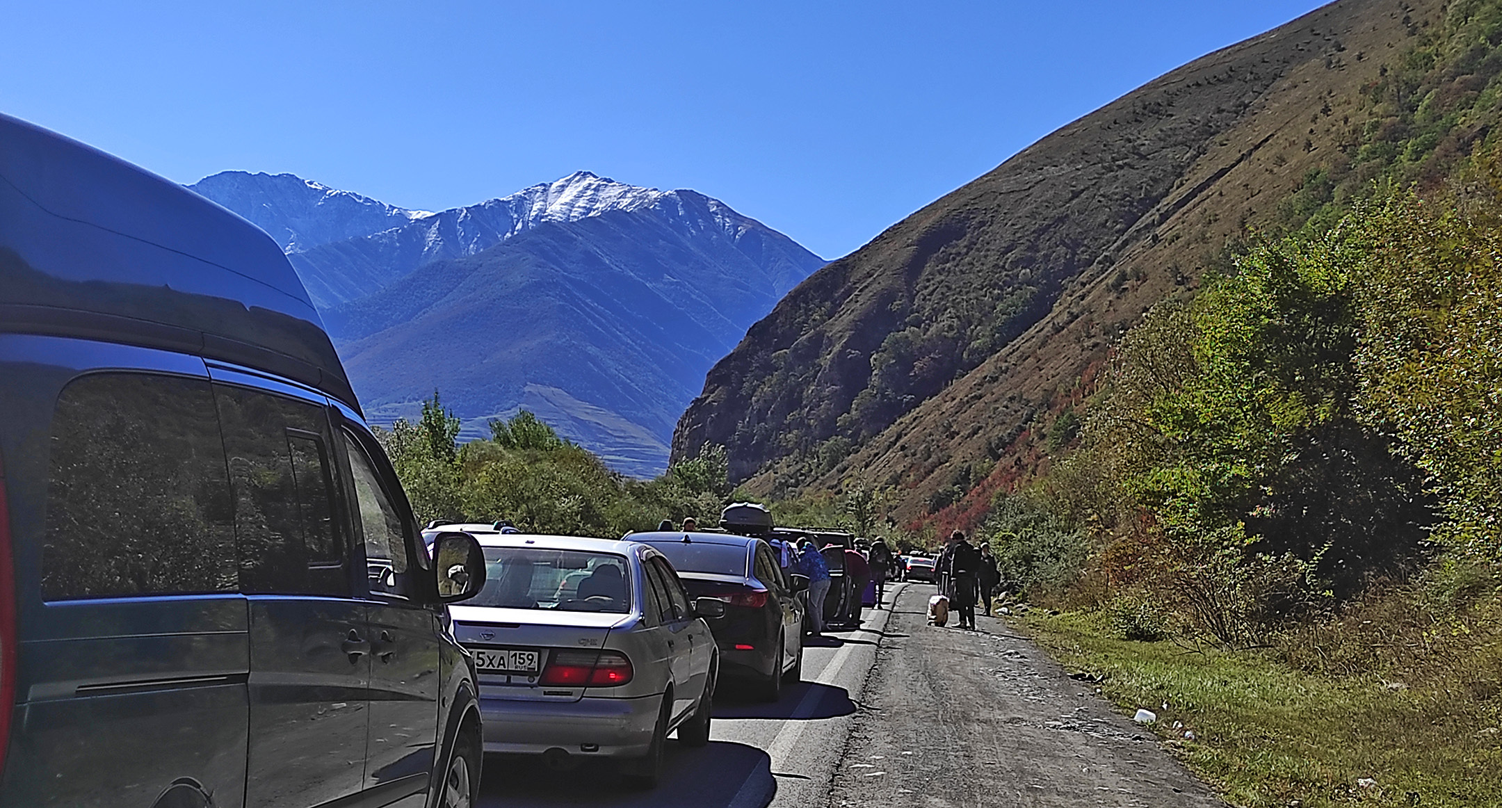 Людей без транспортных средств начали пропускать через границу с Грузией, после чего с российской стороны на пункте пропуска "Верхний Ларс" выстроилась огромная очередь из желающих перейти границу пешком, сообщил автор обнародованного 26 сентября в Telegram видео. Сотрудники полиции не пускают автомобили в сторону границы, и желающим выехать из России в Грузию приходится идти к пункту пропуска пешком или покупать велосипеды и скейтборды. Таксисты отказываются ехать к "Верхнему Ларсу" либо требуют за проезд слишком большие суммы, рассказали выезжающие.