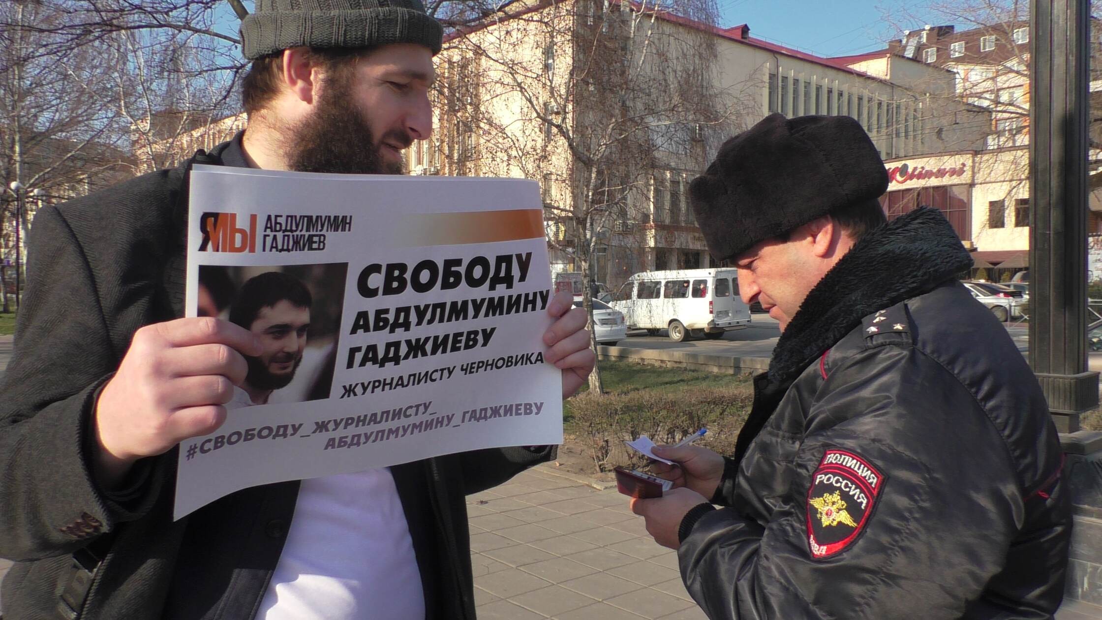 Коллеги Абдулмумина Гаджиева считают его уголовное дело политическим преследованием и еженедельно проводят в центре Махачкалы одиночные пикеты в его поддержку. В них регулярно участвуют учредитель "Черновика" Магди Камалов, заместитель главного редактора Магомед Магомедов и Идрис Юсупов. При этом 2 января, а затем 9 и 16 января полицейские сорвали одиночные пикеты, задержав журналистов.