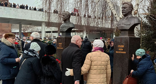 Во время акции памяти пожилая женщина целовала гранитный постамент с бюстом Сталина и крестилась. Корреспондент "Кавказского узла" спросил женщину, почему она крестится, ведь Сталин был атеистом. "Все под Богом ходим. И Сталин ходил", - ответила пенсионерка.