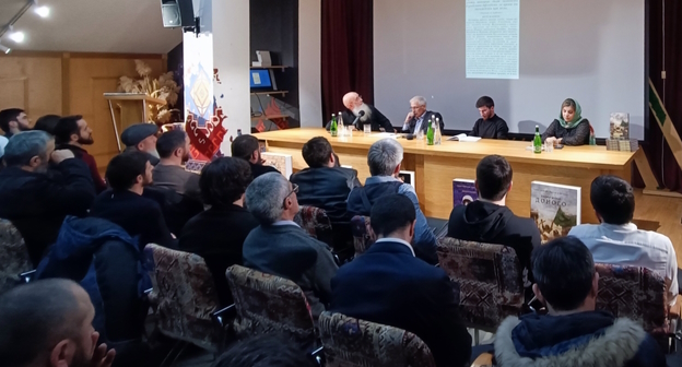 Презентацию очередной книги Хаджи Мурада Доного посетило больше людей, чем рассчитывали организаторы: многим посетителям не хватило стульев в зале, рассчитанном на 90 мест, и они слушали выступающих стоя, передал присутствовавший на мероприятии корреспондент "Кавказского узла".