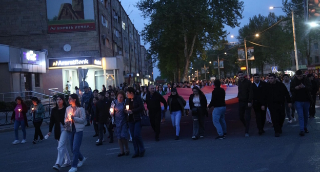 "Традиционное факельное шествие прошло под лозунгом: "Помни прошлое, защити будущее", все участники марша требовали, чтоб все страны мира без исключения признали геноцид армян и осудил всех виновных", - сообщила корреспонденту "Кавказского узла" представитель молодежной ветви АРФ "Дашнакцутюн" Татев Авагян.