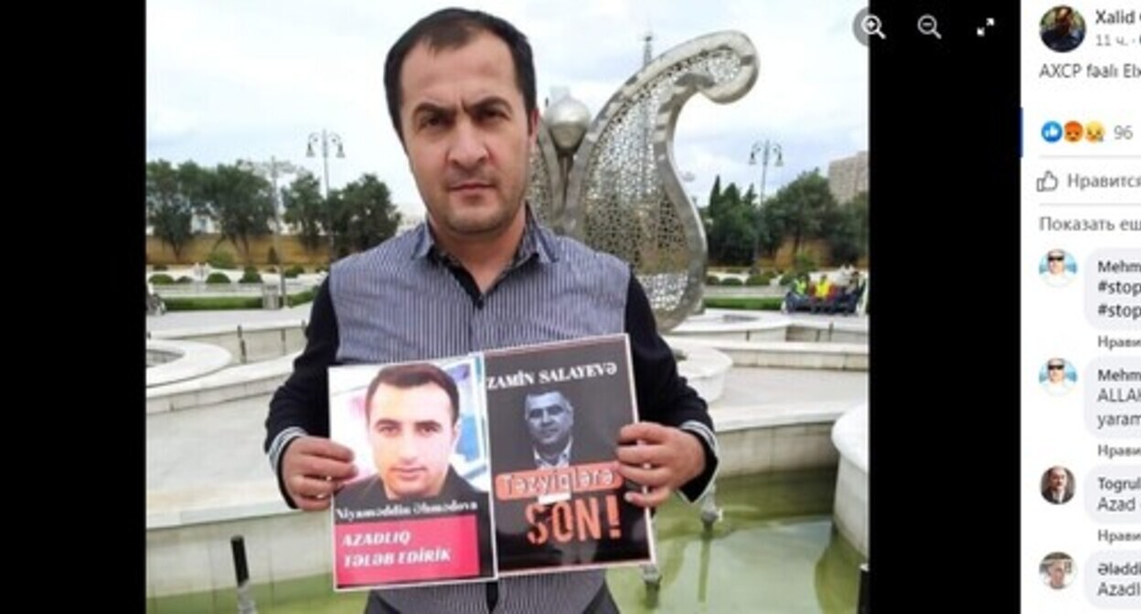 Соратники Эльхана Алиева 26 июля распространили в социальной сети его короткое видеообращение. На этом видео Алиев, обращаясь к товарищам по партии, говорит о возможной провокации против него. Как утверждает активист, он ранее занимался риелторской деятельностью, а затем перестал работать в этой сфере, но в последние полторы недели к нему настойчиво обращался некий мужчина с просьбой "подыскать" для покупки дом или дачу.