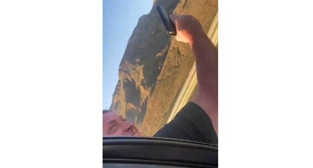 После этого мужчина высовывается из окна машины и, улыбаясь, с сигаретой во рту, делает три выстрела в воздух, а затем стреляет в противоположном движению направлении, также сделав три выстрела. Его действия сопровождаются нецензурными одобрительными выкриками, следует из видео, которое снято с заднего сиденья автомобиля.