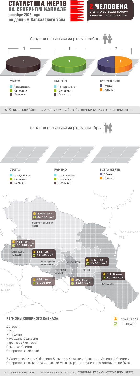Инфографика. Статистика жертв на Северном Кавказе в ноябре 2023 года по данным Кавказского Узла