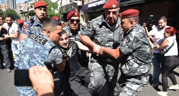 Как писал "Кавказский узел", 19 апреля госкомиссии Азербайджана и Армении договорились о согласовании границы двух стран на ее северном участке по линии на момент распада СССР, после чего в приграничной Тавушской области начались акции протеста. 24 апреля участники митинга и шествия в Ереване выступили против политики премьер-министра Никола Пашиняна, обвинив его в передаче земель Азербайджану. Полицейские запретили продолжать акцию протеста и начали задерживать активистов.
