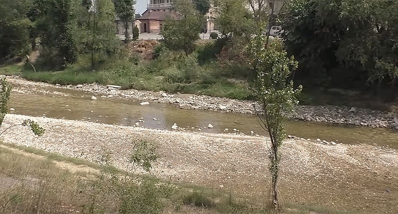Насыпь из камней поперек реки. Кадр видео "Кавказского узла" от 13.07.24, https://www.youtube.com/watch?v=9kw8zwr1ov0"Буквально вчера я здесь был и увидел эту печальную картину. Потом спустились вниз по течению, там, в районе Орджоникидзевского моста, воды уже не было совсем. И так до слияния с рекой Урвань. Было очевидно, что случилось что-то непредвиденное. Потом мне люди стали присылать видеоролики, как рыба осталась на пустом песчаном берегу. Также прислали ролик, как выше Хасаньинского моста кто-то перегородил реку и пустил воду на заполнение озера, которое обмелело", - сказал он корреспонденту "Кавказского узла".