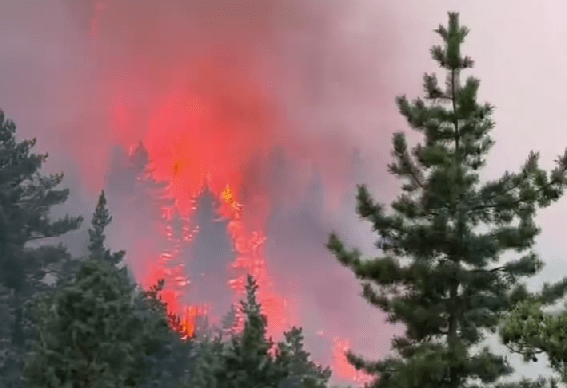 Около 18.00 мск там же опубликованы видео, на которых над лесом видны большие языки пламени.
