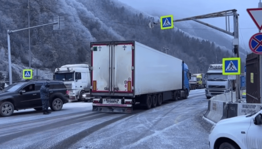 В очереди на выезд из России в Грузию стоит 2525 грузовиков. В Северной Осетии объявлен режим чрезвычайной ситуации в связи с погодными условиями и закрытием Военно-Грузинской дороги.
