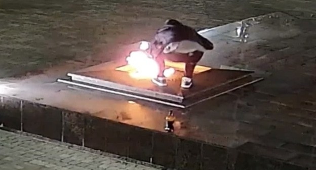 На опубликованной видеозаписи видно, что мужчина находился возле постамента мемориала, затем забрался на постамент, залез на Вечный огонь и присел на корточки, наклонившись над пламенем. Человек находится спиной к камере, поэтому сказать, что именно он делал над пламенем, только по видео нельзя. Затем он поднялся и спрыгнул с постамента, в этот момент к нему приблизились двое мужчин в военизированной одежде.
