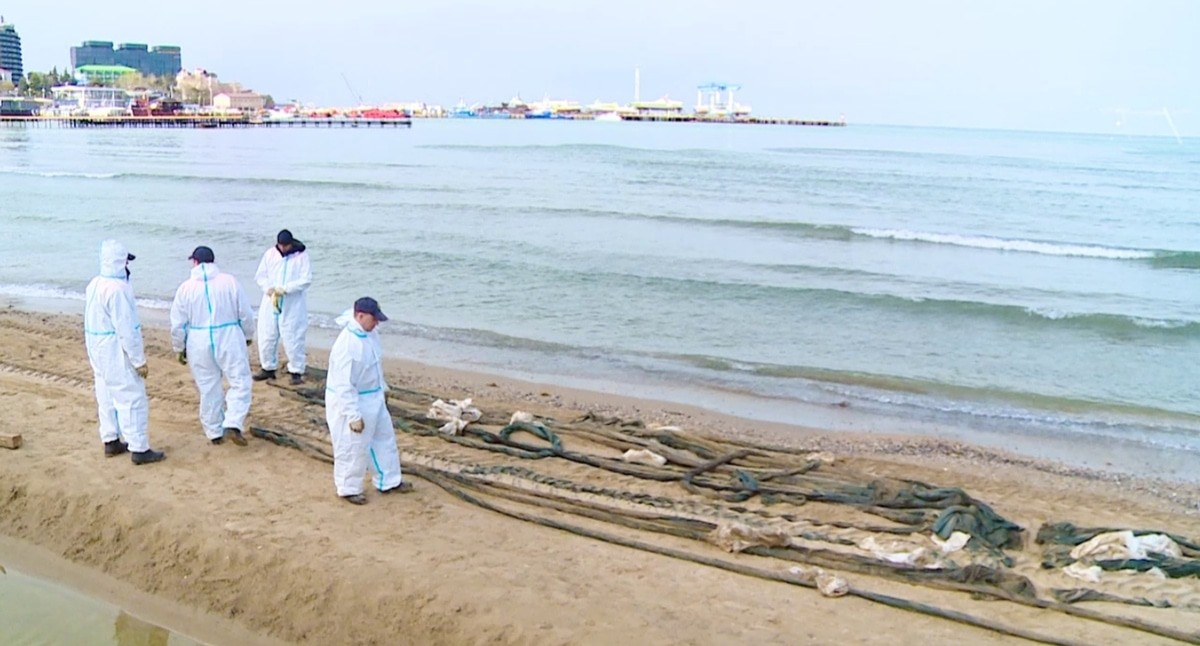 Специалисты меняют на пляжах Анапы загрязненные мазутом защитные сети на новые, рапортовал оперштаб.
