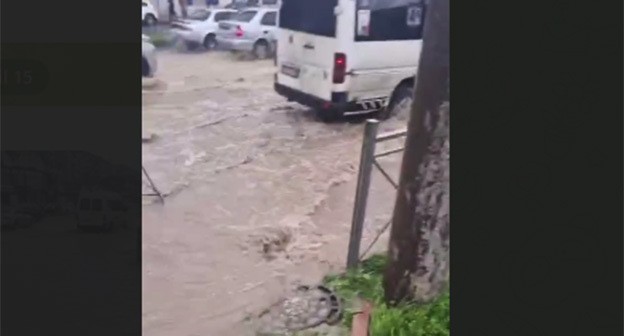 Видео, на котором машины едут по затопленному проспекту Булача, опубликовала "Нетипичная Махачкала" в своем Telegram-канале.