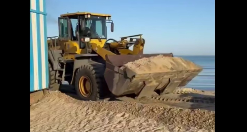 "Сейчас демонтируют песчаную насыпь от устья реки Можепсин до пляжа "Тартуга" в селе Витязево. Вал сначала разравнивают фронтальными погрузчиками, на следующем этапе песок многократно просеют с помощью специальной техники", - говорится в публикации.