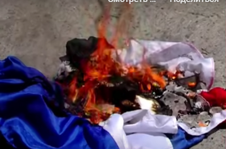 Группа участников акции протеста сожгла флаг России у гостиницы, где располагаются российские фехтовальщики, приехавшие на чемпионат мира, сообщила сегодня телекомпания "Пирвели".