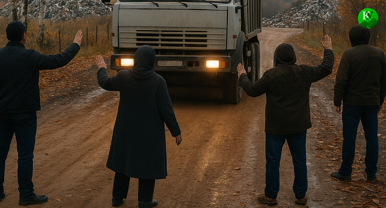 Жители Аксайского района остановили грузовик, который вёз отходы на полигон "Южного города". Как следует из видео, опубликованного в telegram-канале Don_mash ("Кавказский узел" не публикует видео из-за обилия ненормативной лексики) люди на машине остановили грузовик, который вез на свалку компании "Южный город" груз, схожий с мазутом. Водитель рассказал, что груз из Ростова-на-Дону. Местные считают, что груз везли к ним, чтобы закопать в земле.