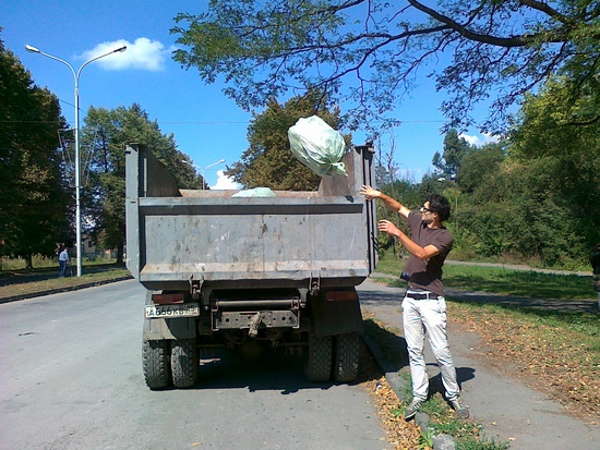 а так, всем спасибо, кто пришел на уборку, это был хороший день. всех не упомянешь, но все же спасибо, например тем двум парням, которых я вообще не знал и которые просто пришли, молча поубирали и пошли дальше. спасибо водителю грузовика, который прождал нас весь день, и который ничего не ответил, когда я сказал ему, что мы "ни от кого, просто в интернете списались". спасибо Зуре, который пришел поддержать субботник прямо с поезда. спасибо некоему Вове, работнику Электроцинка, который хоть и пришел поздно, но удачно влился в компанию. да и тем двум парням в невзрачной девятке, без вас этот день былы бы другим. ну и конечно всем дамам в элегантных черных перчатках, без вас этот день был бы плохим.