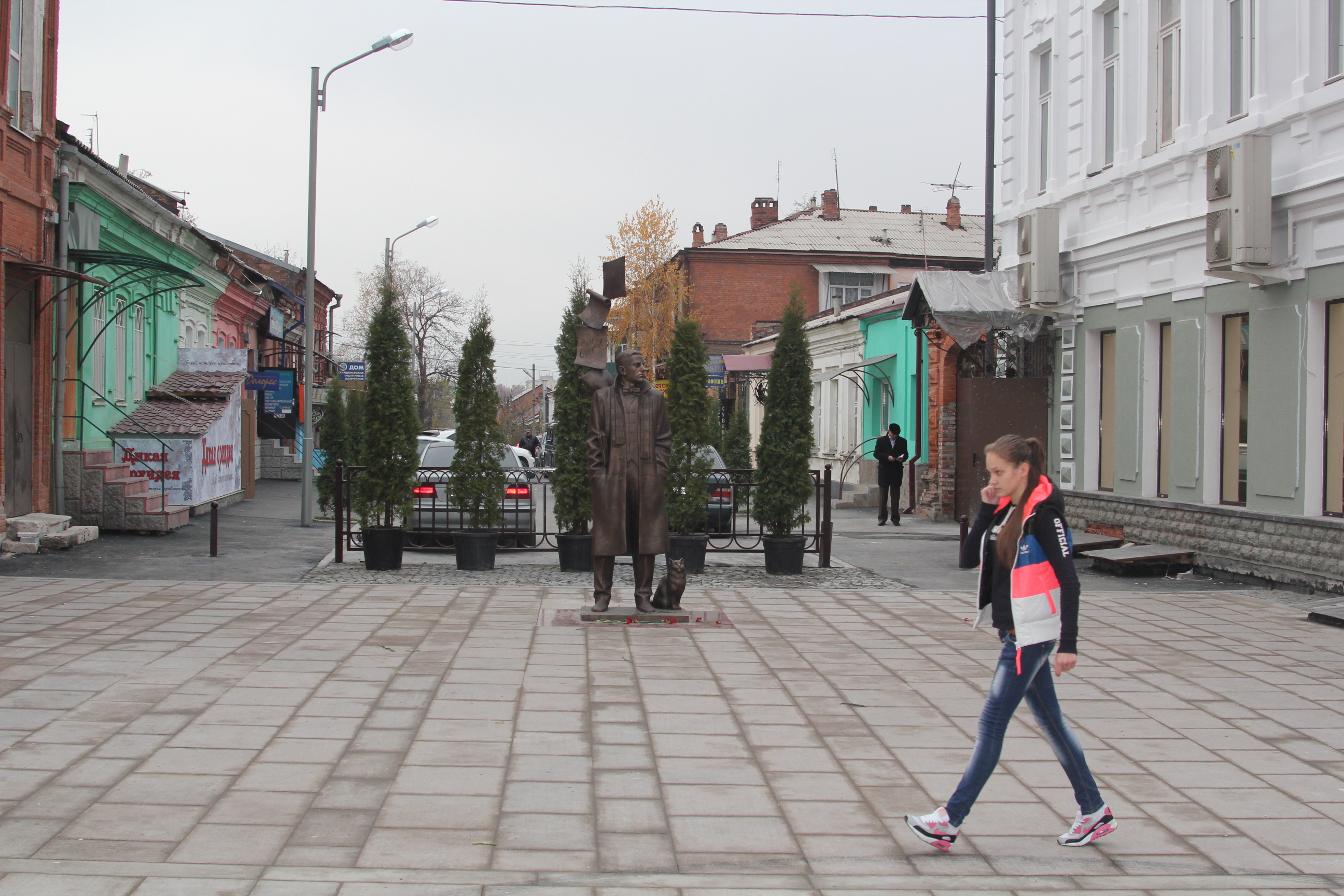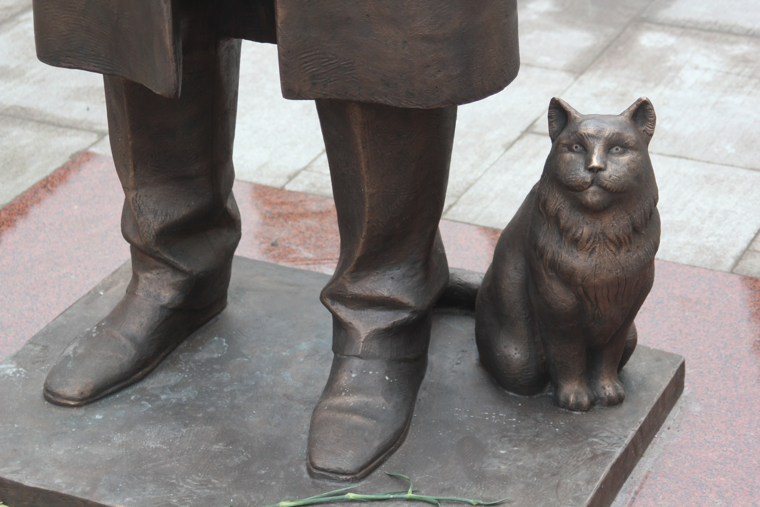 я даже к этому памятнику могу придраться, хоть он мне и нравится. ведь это памятник не Михаилу Булгакову, человеку, который жил и творил этой улице. это памятник его произведению М&M, которое он творил вдали от Владикавказа. так, что здесь есть логическое расхождение. кроме того, памятник копирует два самых заезженных и самых растиражированных стереотипа из упомянутой книги - образ кота-бегемота и знаменитую фразу Воланда "Рукописи не горят". это вещи, которые моментально приходят на ум при упоминании Булгакова или книги.