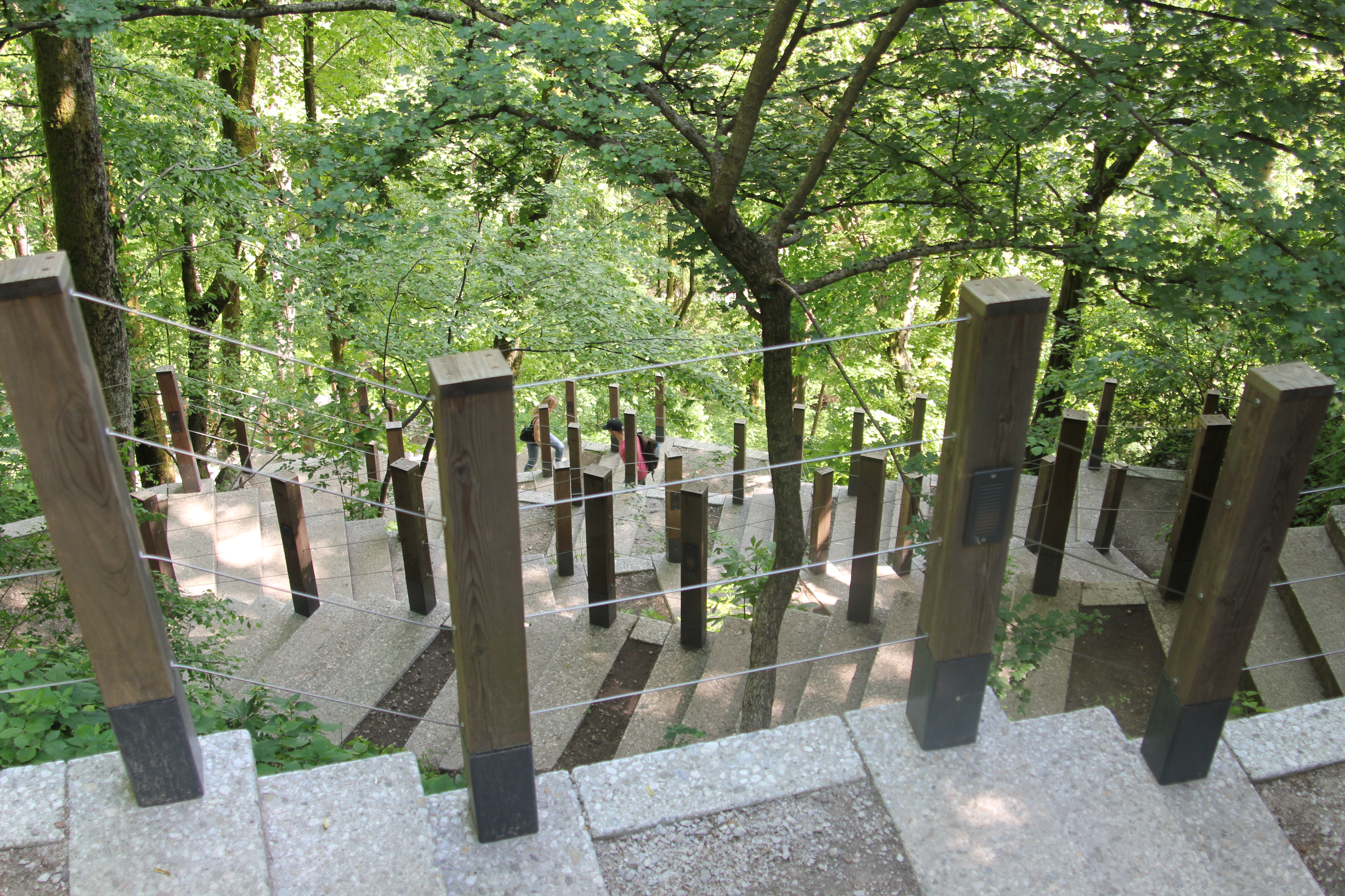 эта горная тропа, ведущая от озера к замку меня удивила. ступеньки, перила, а если присмотреться, то увидите даже подсветку...