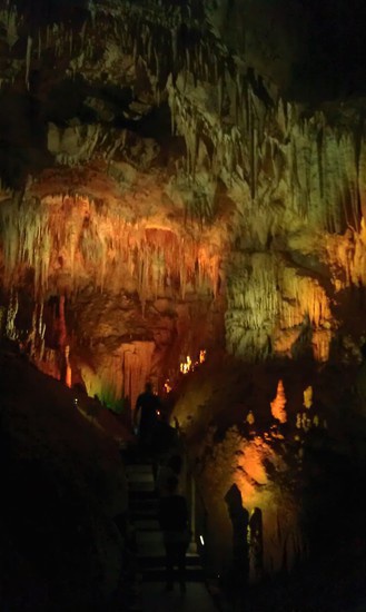 из Тбилиси поехали мы в сторону Кутаиси. там есть пещера "Прометей". в советское время вроде Пещера Победы называлась или как-то так. щас ее подсветили, музыка играет, ну кто был в новоафонской пещере тот сразу поймет, приблизительно то же самое. но в любом случае очень красиво, пару десятков залов, подводные реки и озера. мой совет тем, кто вдруг туда попадет - постарайтесь отстать от группы и хоть ненадолго остаться там одному. вот тогда вы почувствуете всю атмосферу. холод, капающая с потолка вода, летающие мыши, и эхо от каждого звука. очень впечатляет. так как снимал на телефон, что-то показать оттуда абсолютно невозможно.