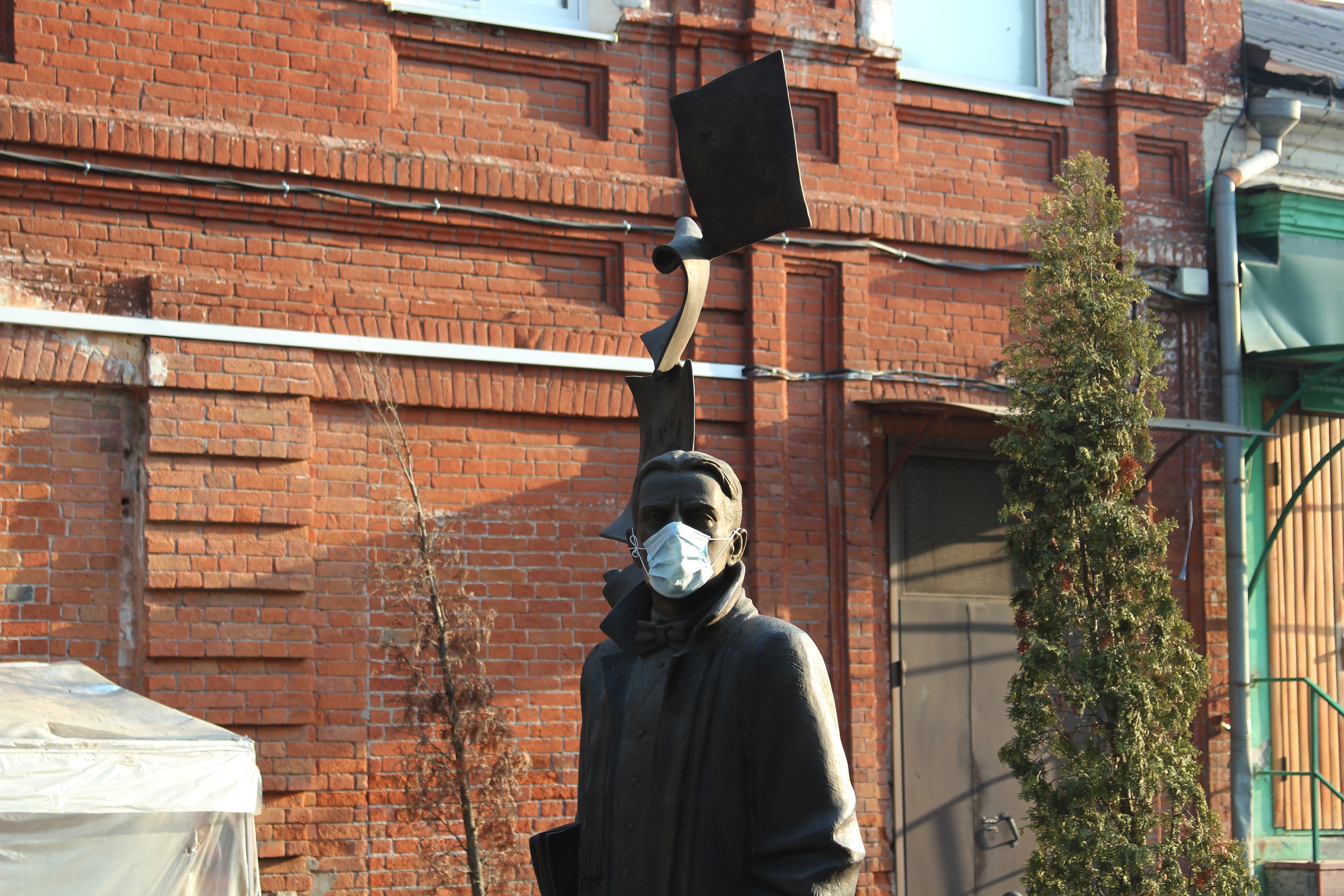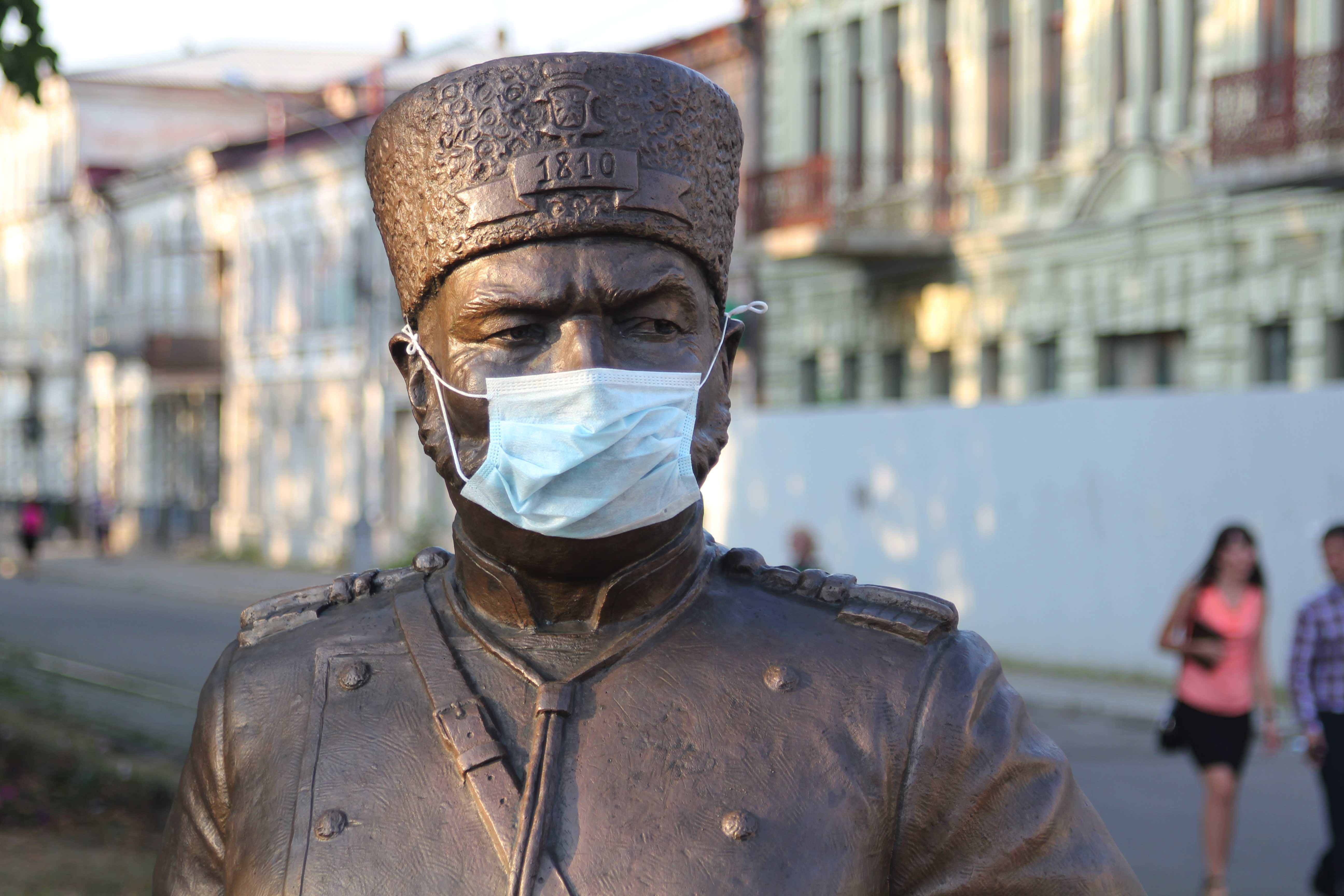 хотя, конечно, немного отвлекаясь от темы, то, каким его изобразил скульптор Владимир Соскиев, делает респираторную маску весьма гармоничным дополнением к образу поэта: