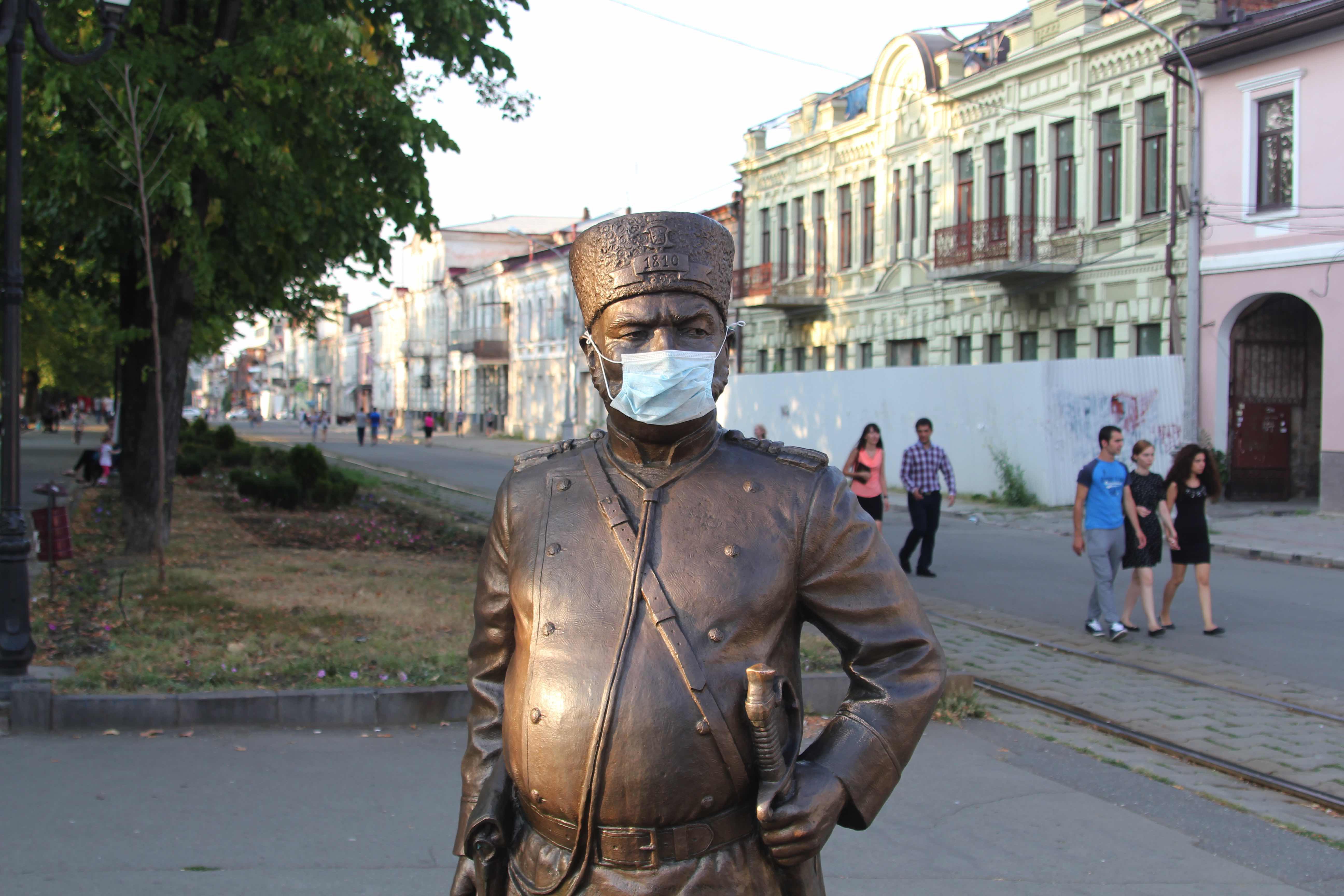 для привлечения внимания к проблеме отравления заводом "Электроцинк" жителей Владикавказа, я как-то задумал такую шуточную акцию - "Великие русские писатели против завода "Электроцинк". Суть была в том, чтобы сфотографировать все памятники русским писателям в городе с респираторными масками на лицах, прямо как выходили жители Владикавказа на митинги против ЭЦ.
