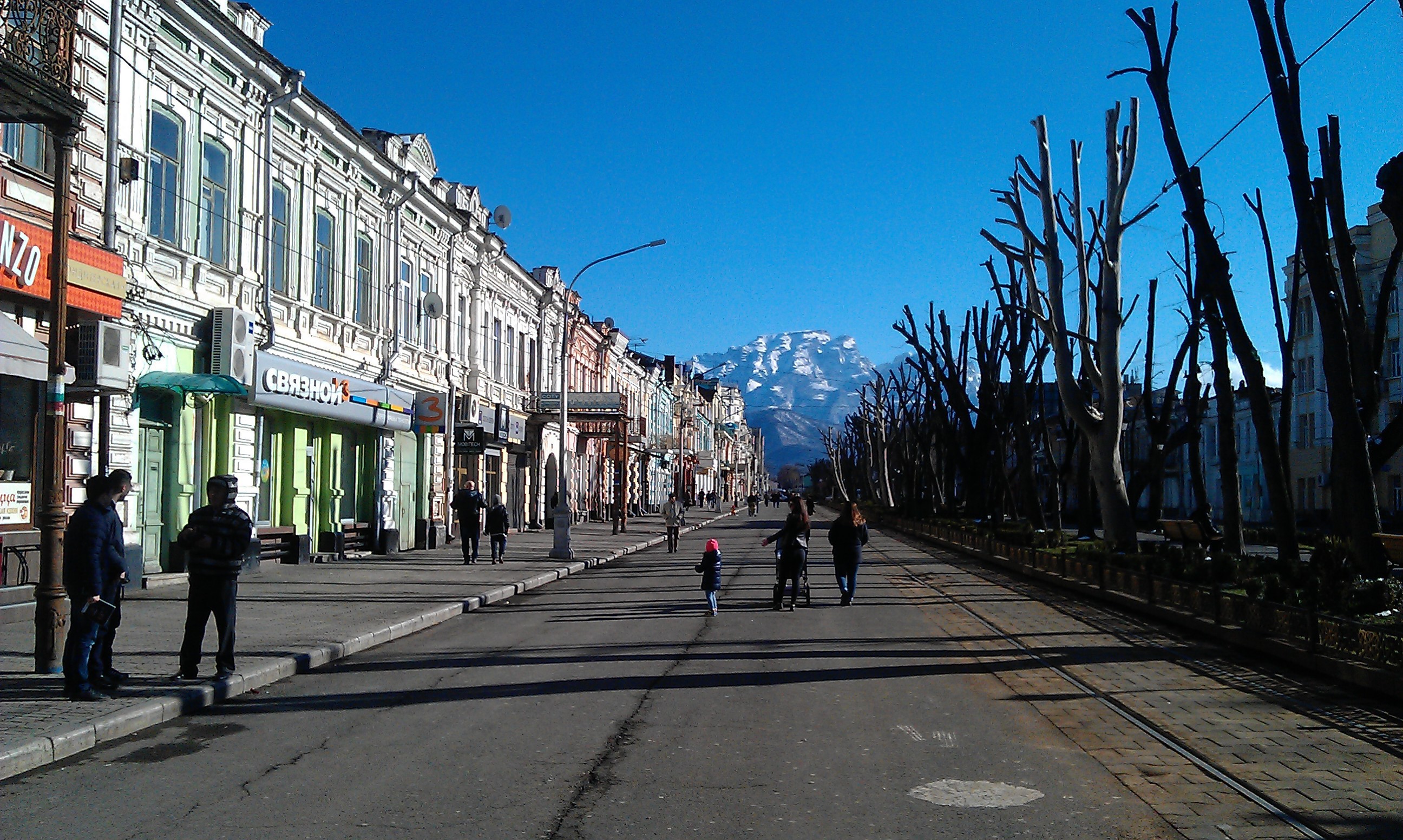 и в очередной раз удивляюсь простоте и оригинальности идеи царских архитекторов - выстроить город так, чтобы основные улицы вели к горам. благодаря этому, любоваться ими можно почти с каждого балкона в центре города. вот что надо сохранять в нашем городе, в этом, можно сказать, его единственная уникальность - дореволюционный архитектурный ансамбль и отличный вид на Большой Кавказский хребет, все, больше ничего нет. вот этот провинциальный уют и следует сохранить, а не делать из Владика Москву, строя новые дороги и многоэтажки в центре.