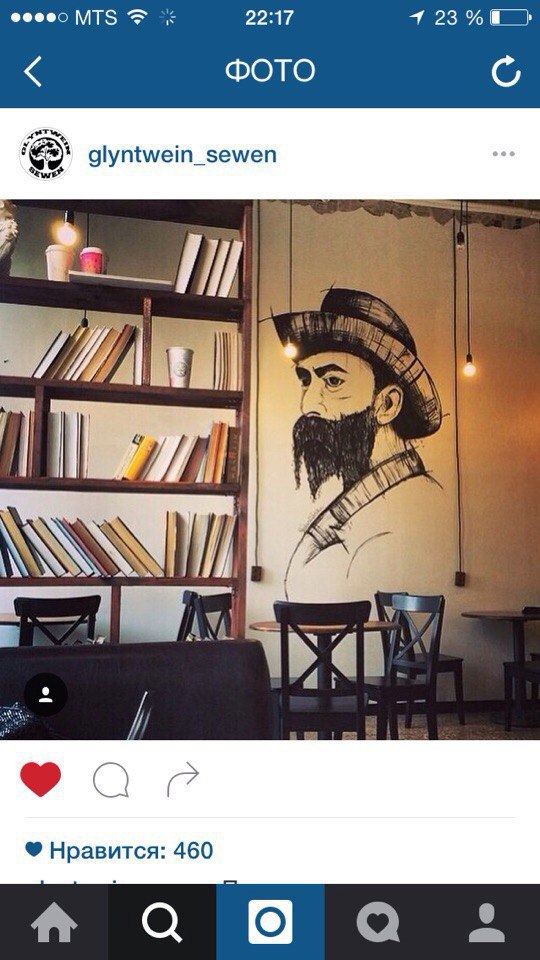 таким же он перекочевал на стену хипстерского кафе на Проспекте мира: