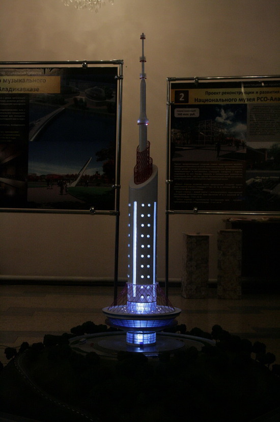 сегодня презентовали проект новой телевышки во владикавказе. будут строить на "лысой" горе, высота 150 метров. объем финансирования 1300 млн рублей. должны сдать к 2011 году. обеспечит цифровое ТВ, улучшенный доступ в интернет и много еще всякого обещают. но что самое главное, там будет ресторан!