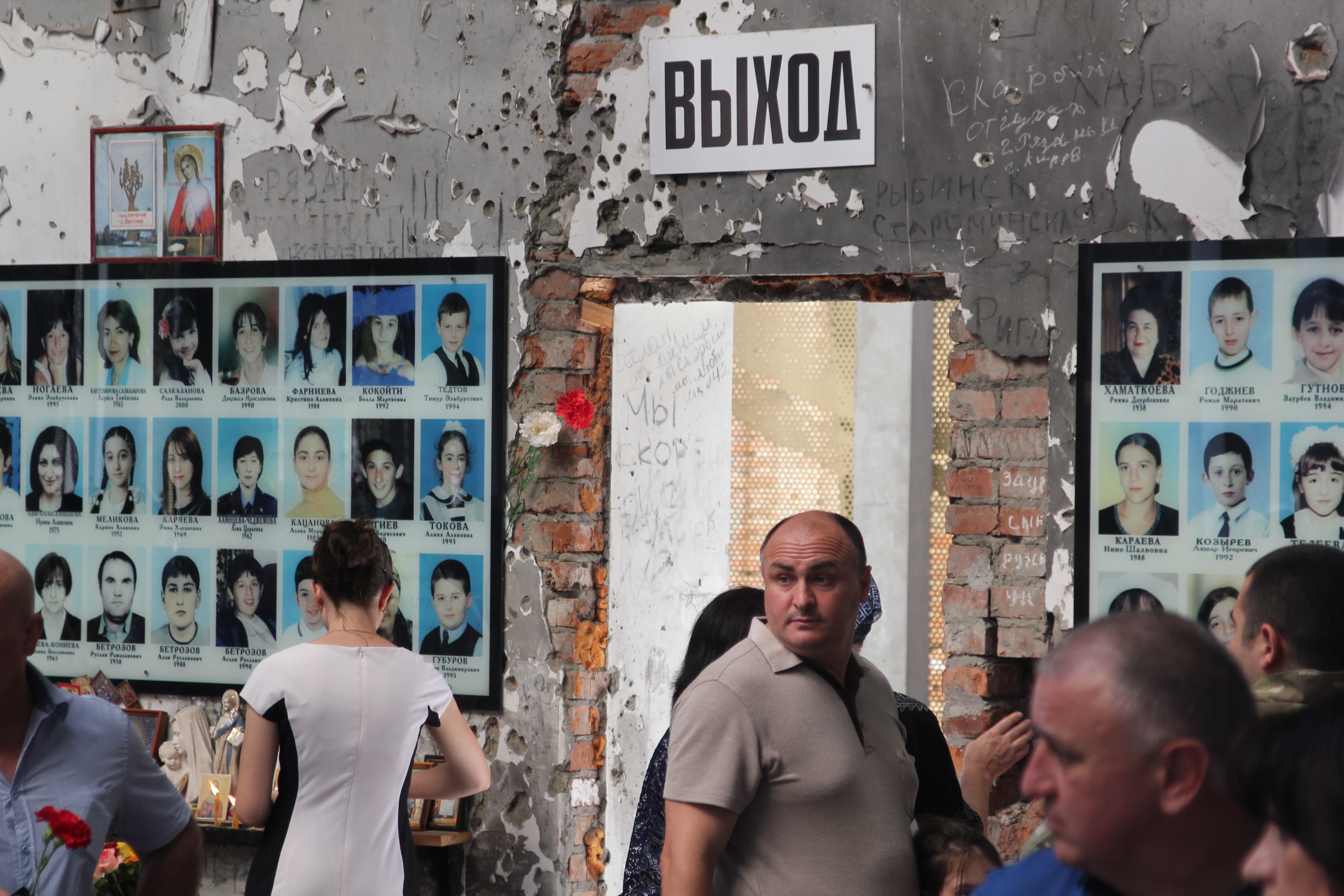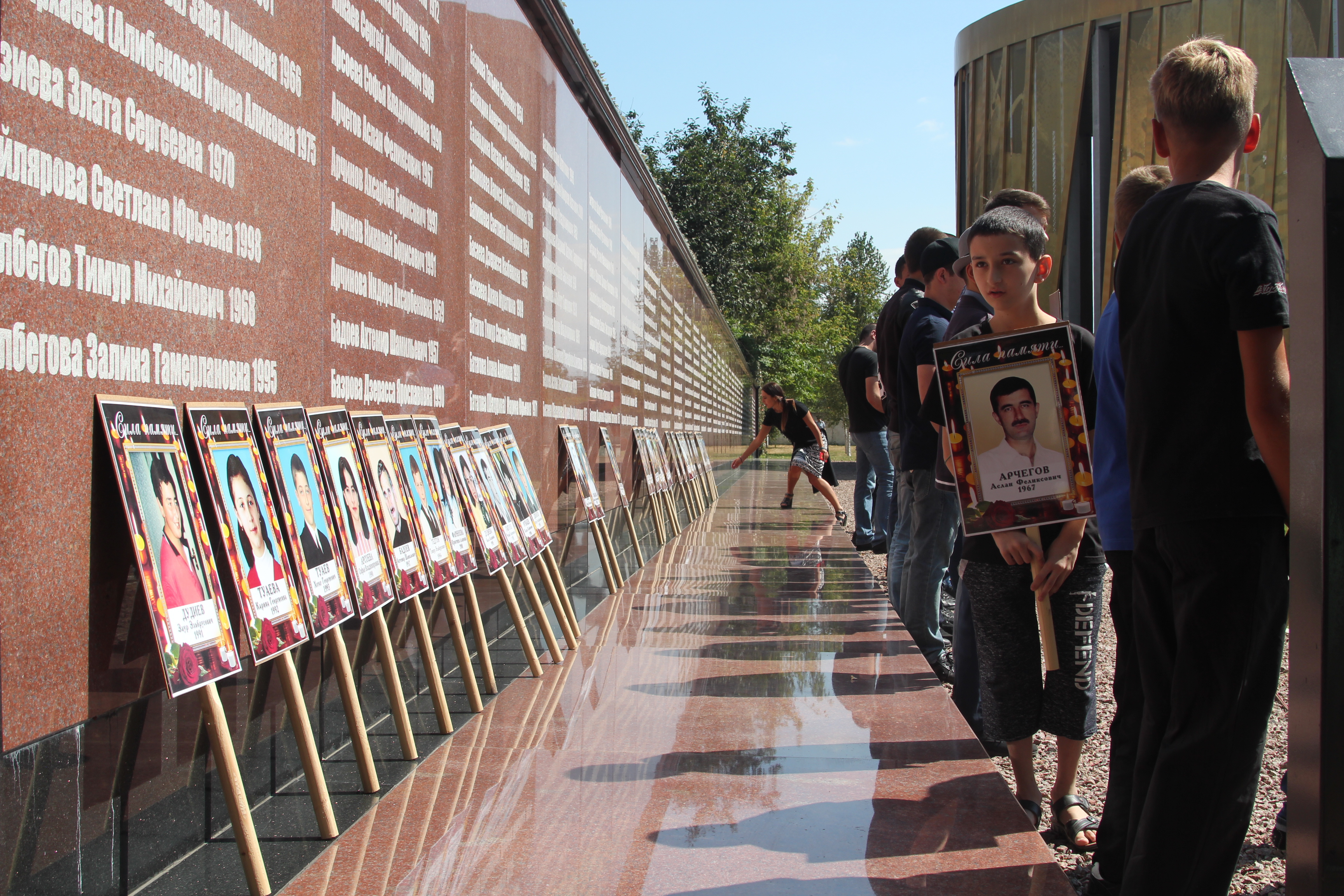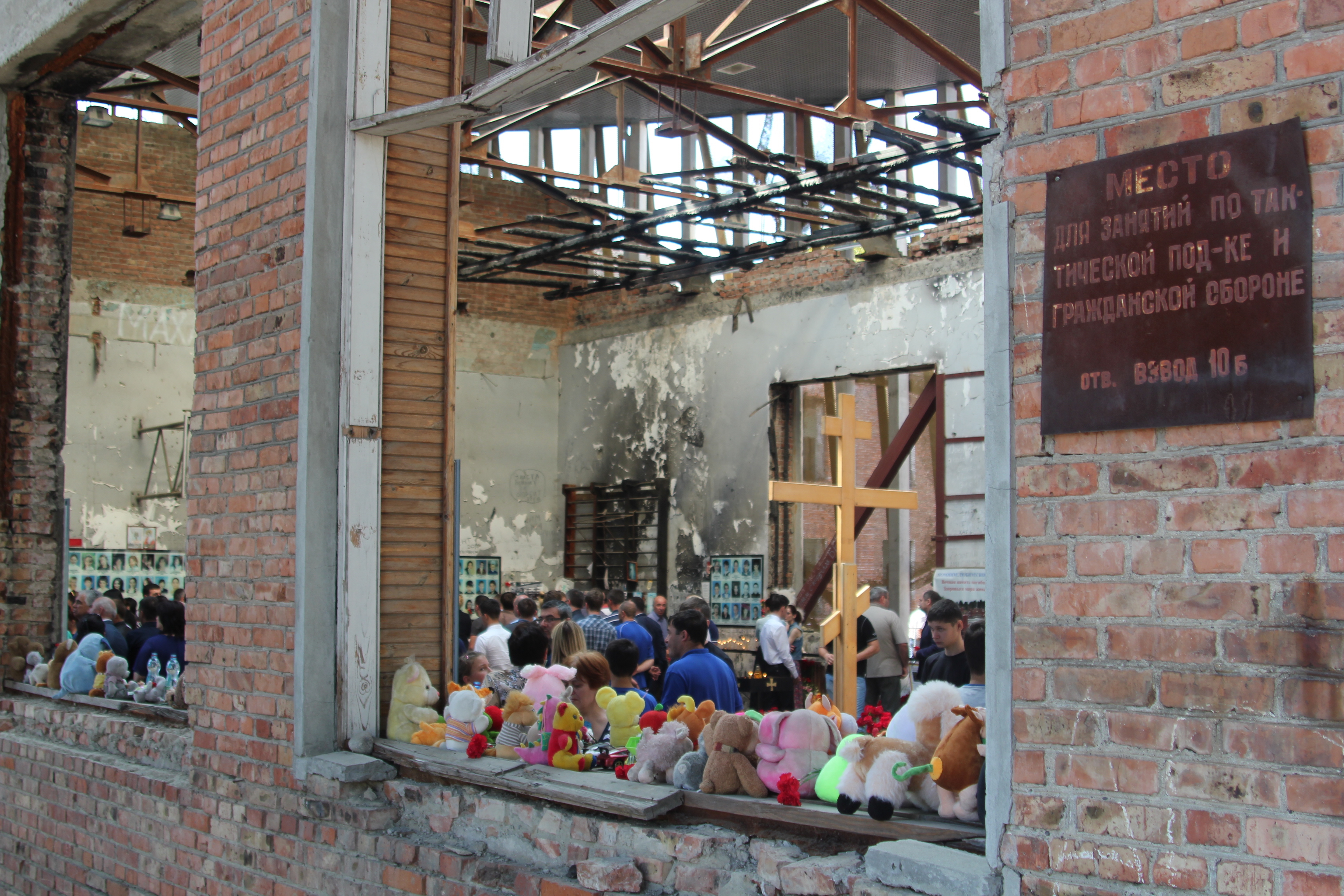 несколько фотографий с сегодняшних траурных мероприятий и короткое видео с минуты молчания в 13:02 - времени первого взрыва в спортзале школы.