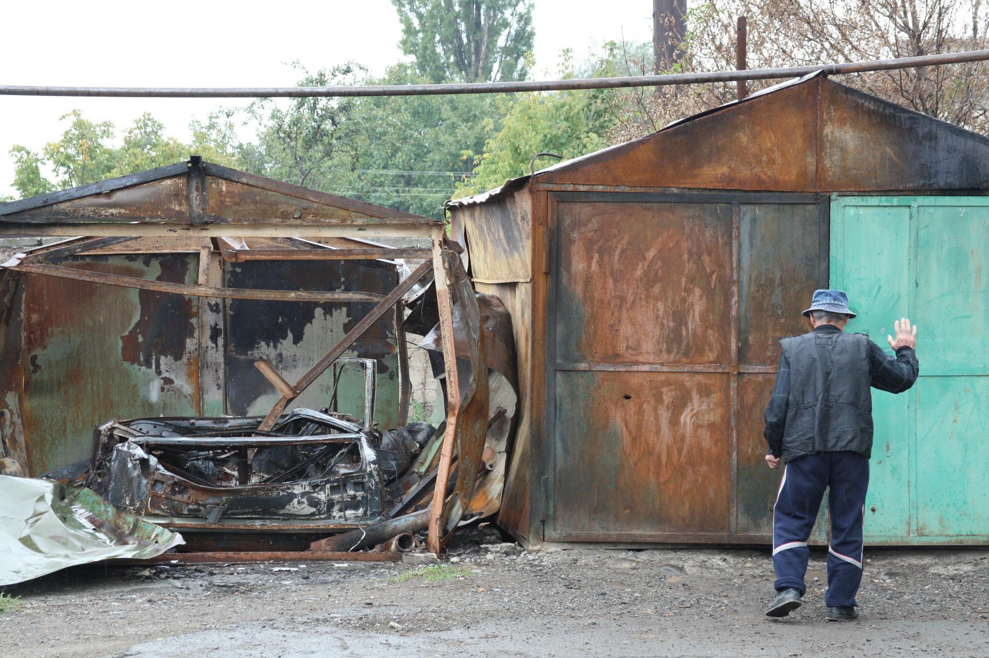 гараж и то, что осталось от машины внутри него