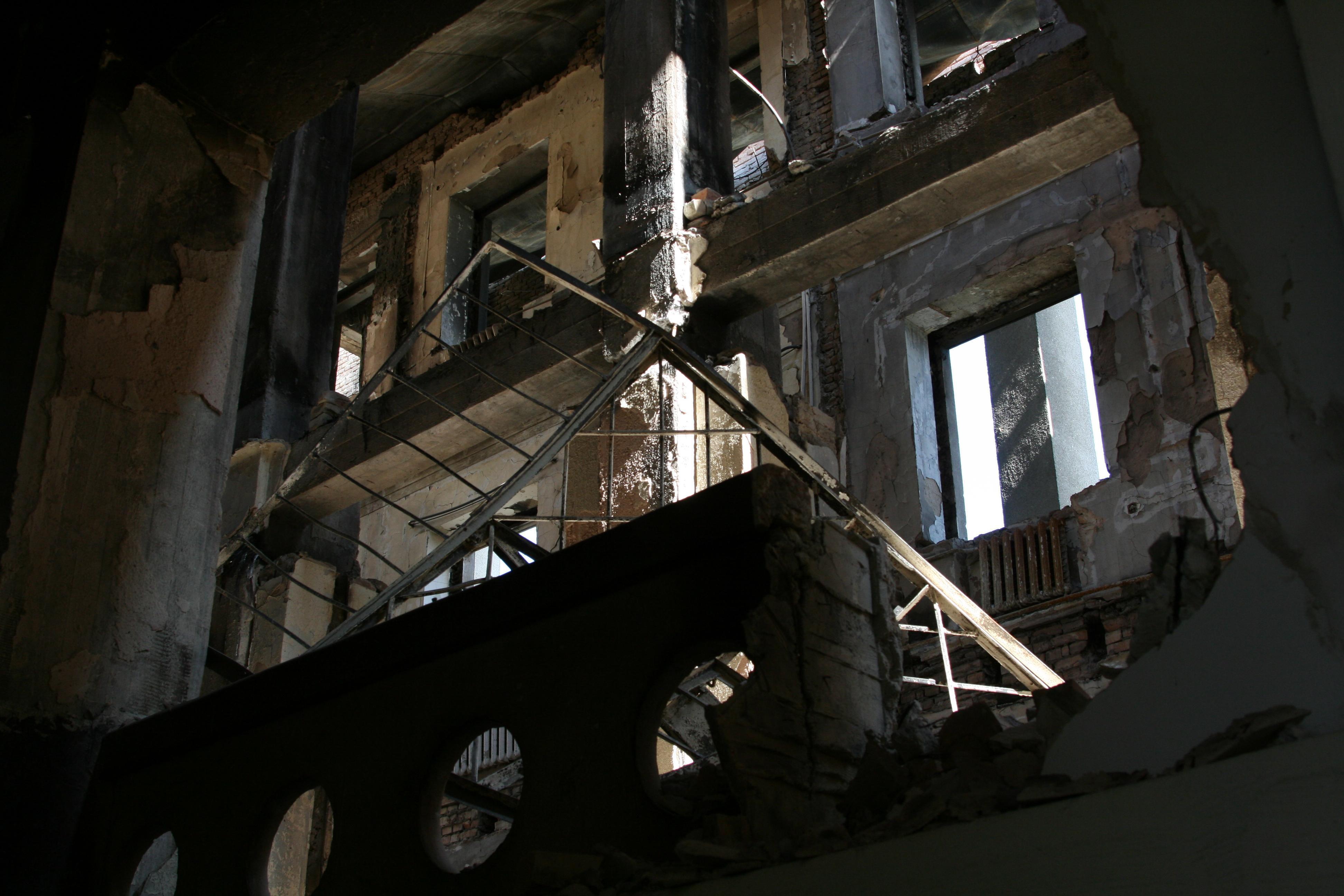 здание парламента Южной Осетии, которое в ночь с 7-го на 8-е августа подверглось сильной бобмежке из "градов", потому что в его подвале находился командный пункт вооруженных сил ЮО.