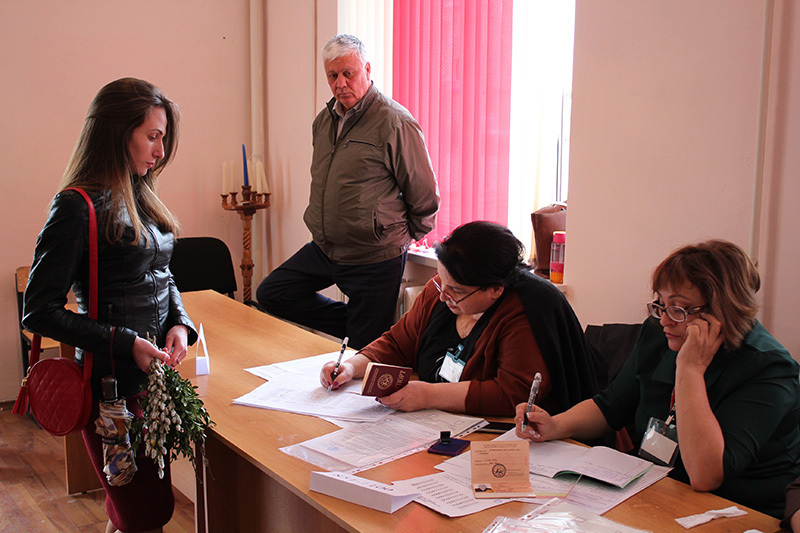 несколько снимков с начала голосования. людей много, по крайней мере на центральных участках, есть даже небольшие очереди. пока все спокойно, без нарушений. многие идут с веточками вербы в руках, так как сегодня у православных Вербное воскресенье.