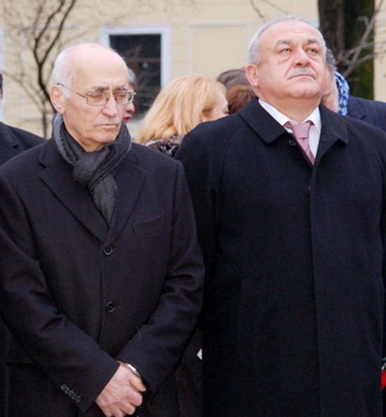 а эта фотография мне показалась любопытной по выражениею лиц автора памятника и главы республики. один погружен в себя, глаза опущены вниз. другой наоборот, с гордо поднятой головой рассматривает новый памятник.