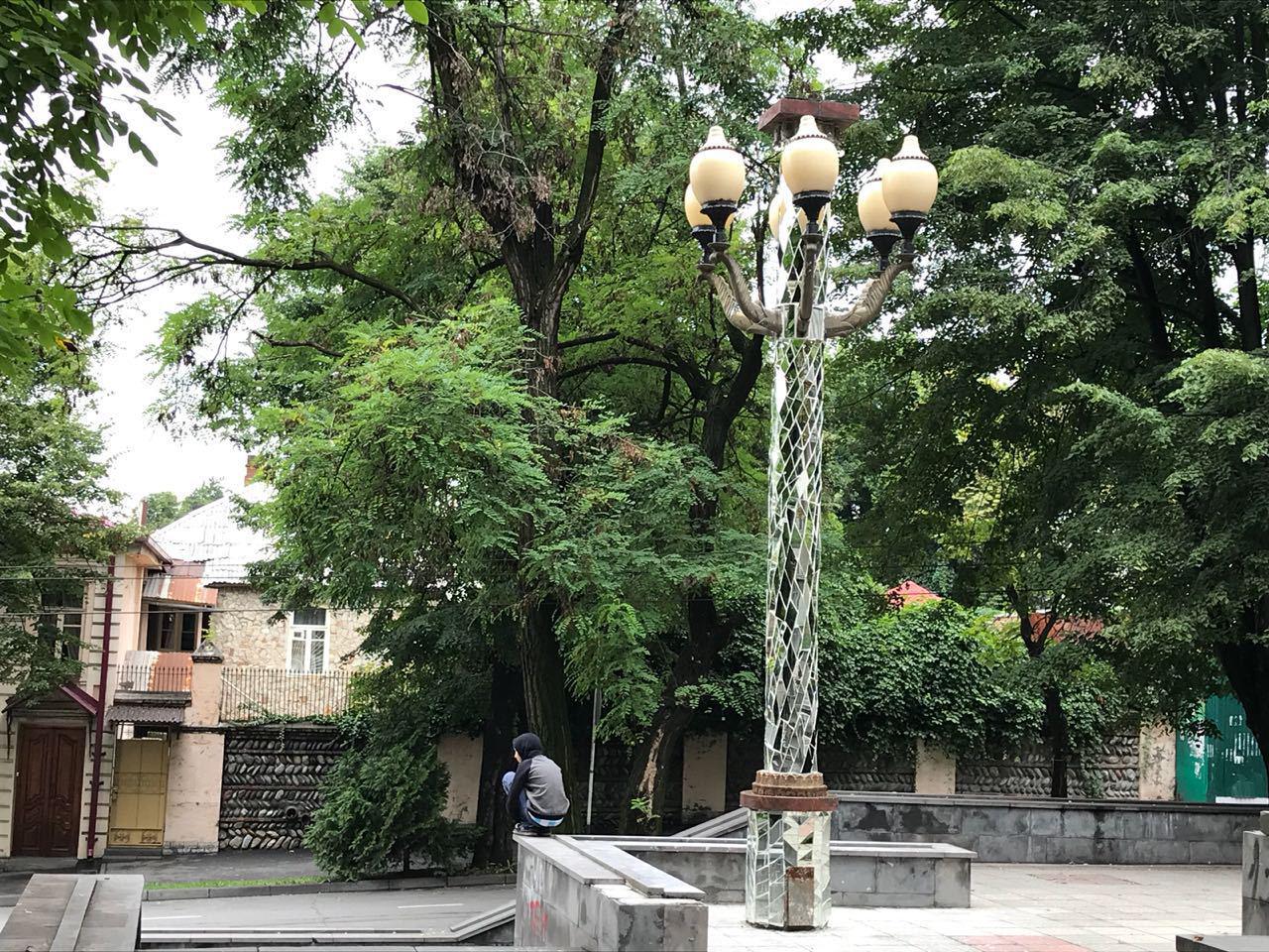 несколько дней назад повесил у себя в фейсбуке фото, где ребята из "Портала" работают над старым фонарем в центре города - обклеивают его кусочками зеркал. столб этот старый, но судить о его архитектурной ценности мне трудно. стоит в очень видном месте и сколько я его помню, он всегда был обшарпанный и раздолбанный.