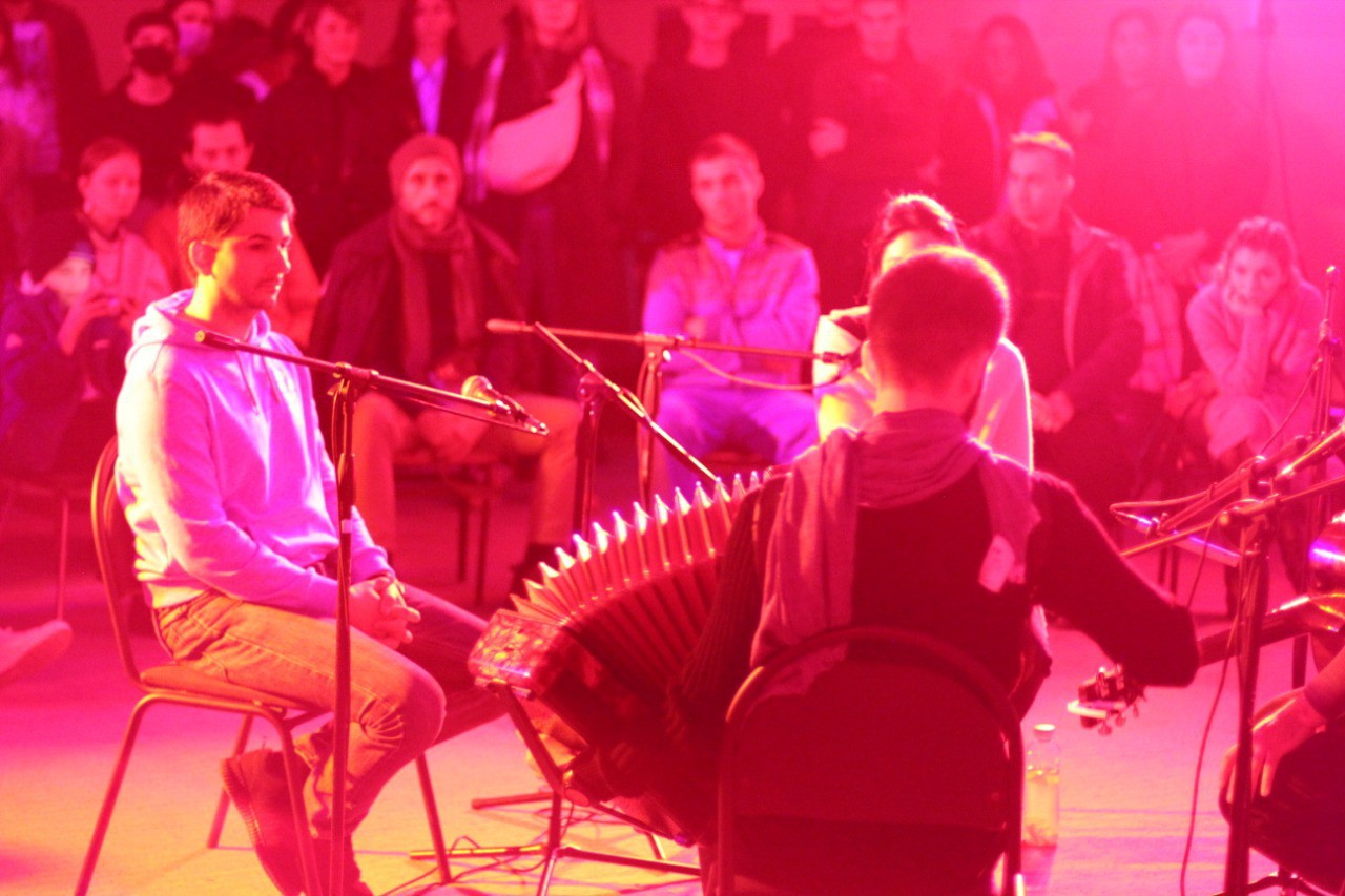 выступало всего два коллектива, но такие разные, что как гамма впечатлений оказалась очень широкой. это ансамбль JRPJEJ с новой программой, ранее не исполнявшейся. они сами называют это пост-традиционной черкесской музыкой. то есть, нациальная сосатвляющая в музыке здесь очень сильно слышна, но и собственный модерновый подход музыкантов тоже. это такие растяжные пения, погружающие в медитацию.
