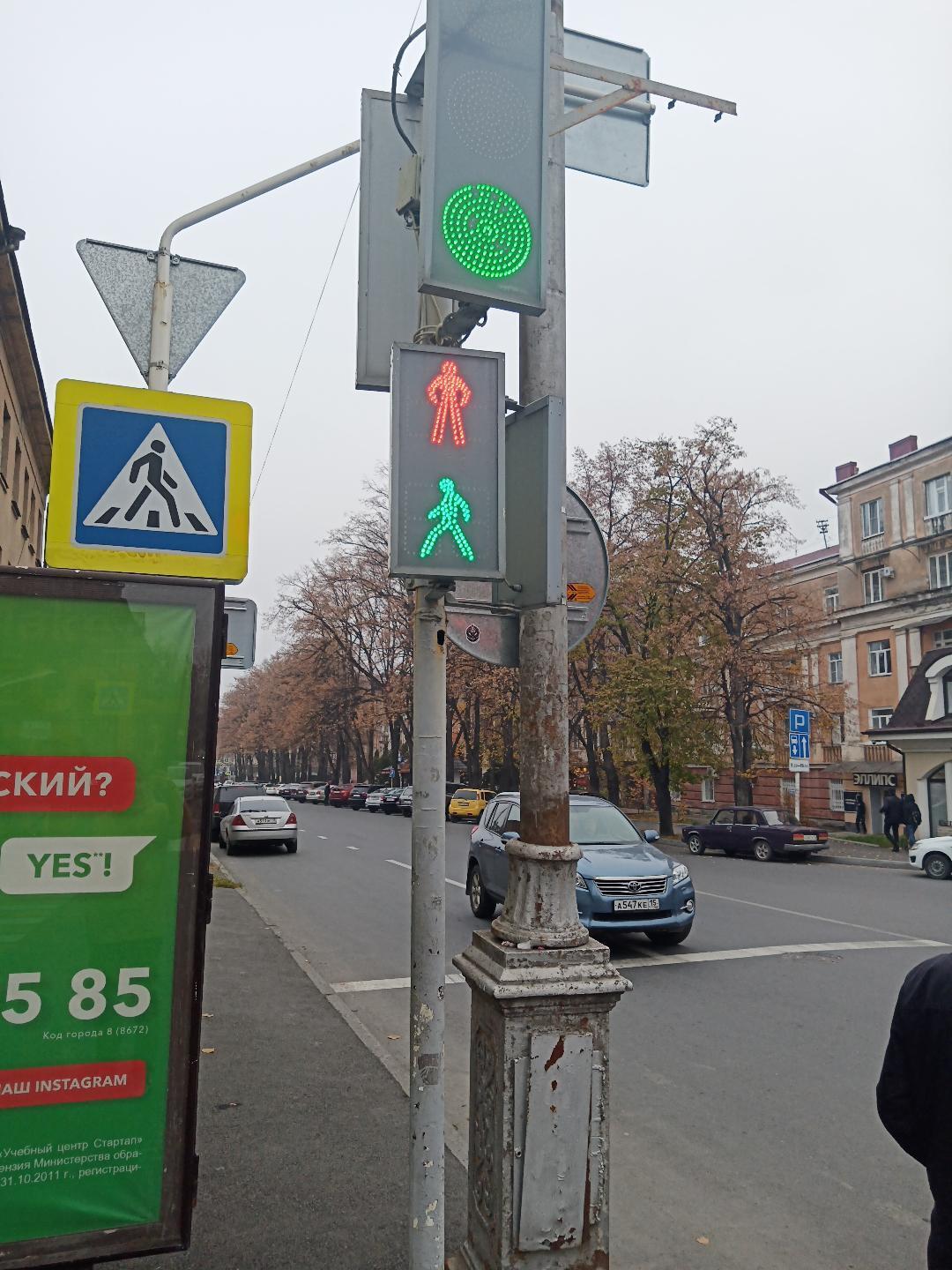 на мой взгляд ситуация со светофорами в центре Владикавказа просто катастрофическая. говорю за только за центр, потому что редко бываю на окраинах. но в центре города очень редкий светофор работает нормально. то есть, некоторые не работают вообще, а другие работают так, что лучше бы не работали... смотрите на фото. с такими светофорами угодить под машину не составит большого труда...