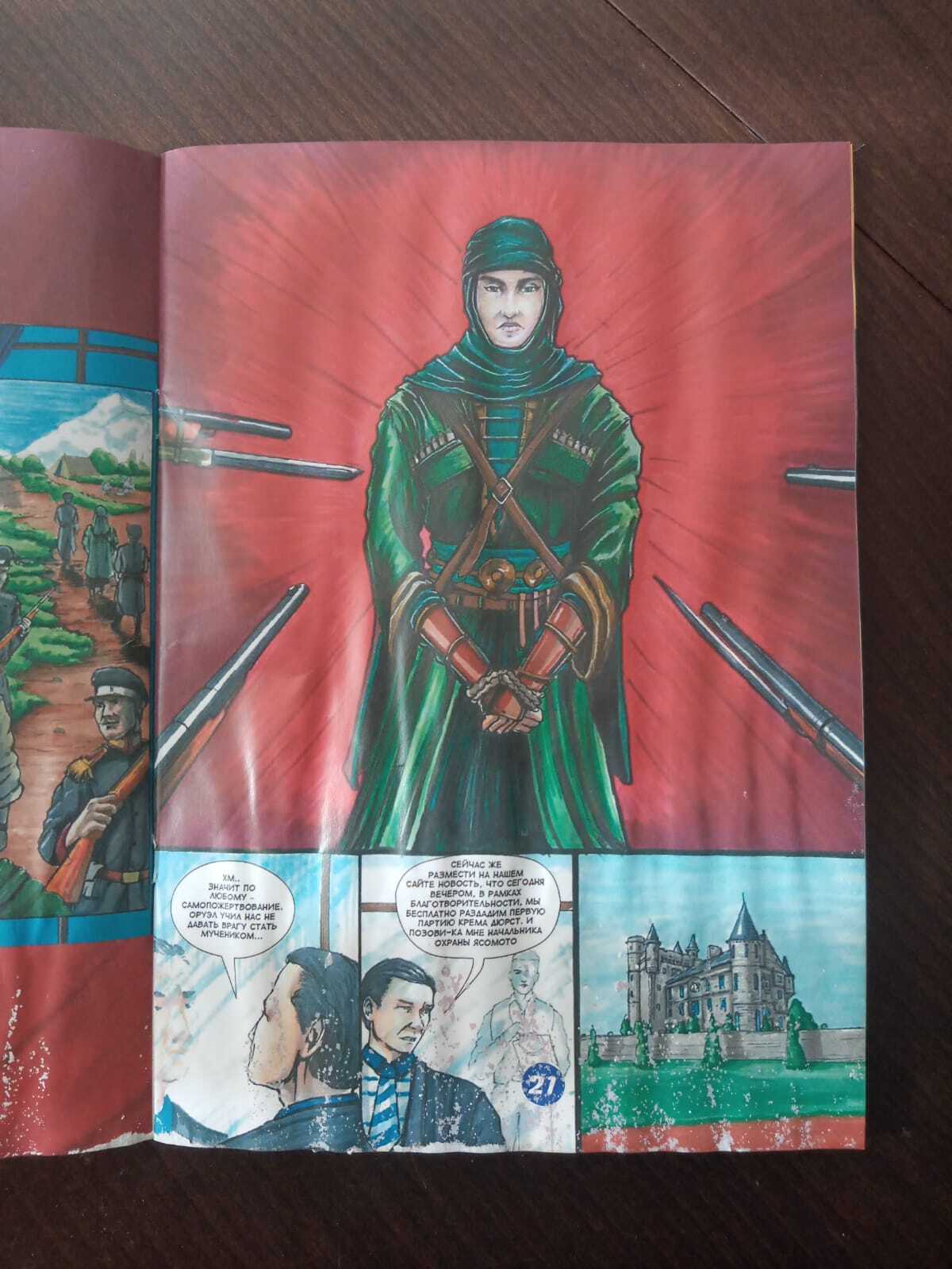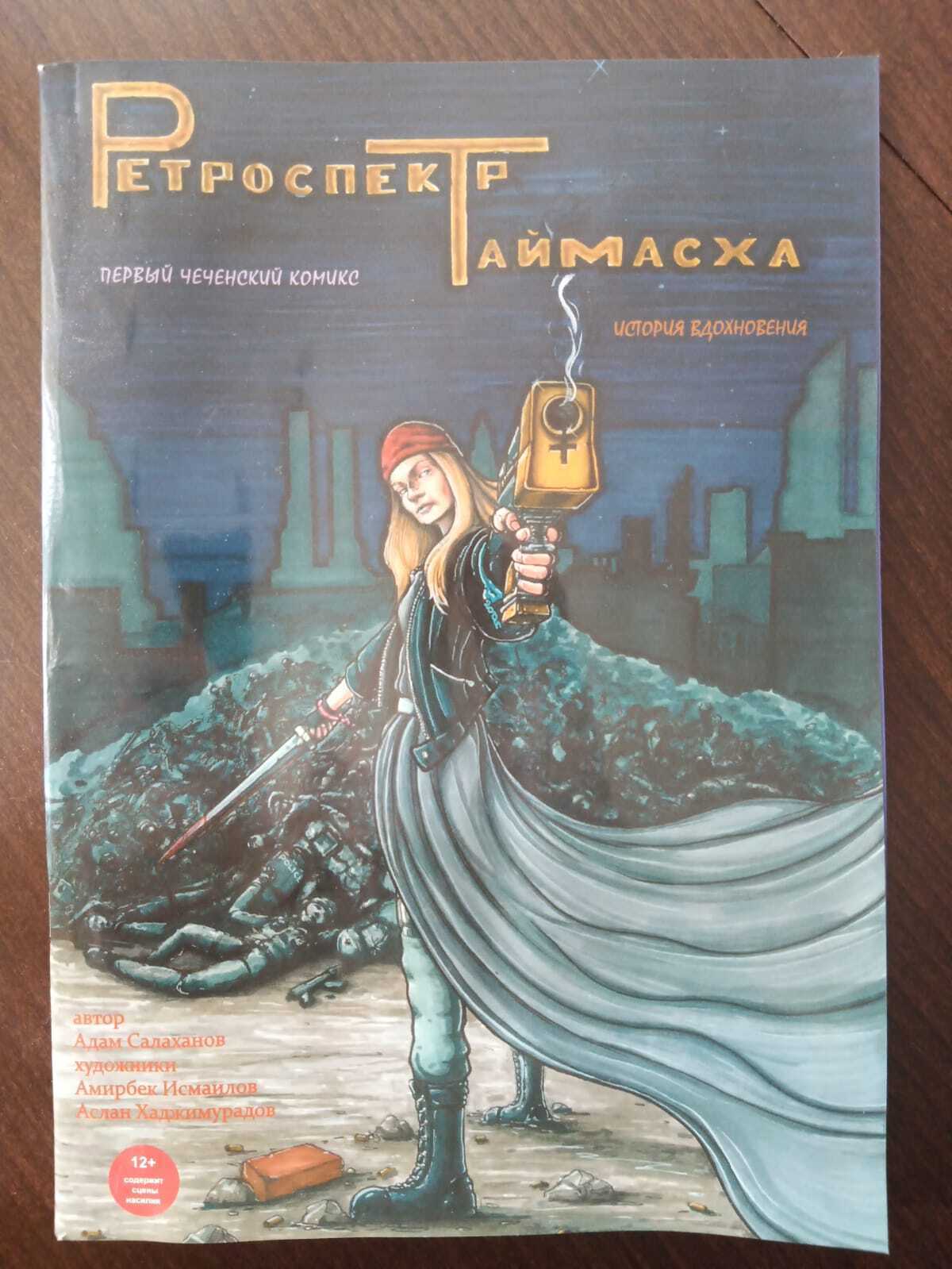 кстати, вот совсем недавно попался в руки "первый чеченский комикс", очень интересно. его автор молодой писатель Адам Салаханов. комикс сделан в стиле кибер-панк, но главная героиня принимает образ реальной чеченской воительницы, начальнице отряда во время Кавказской войны Тамасхи и села Гехи.