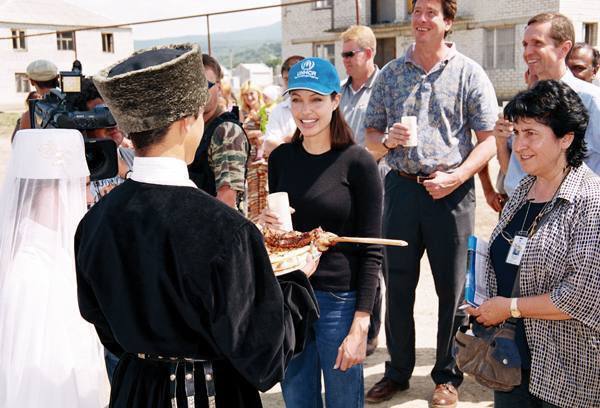 в августе 2003 года Анджелина Джоли провела встречу с беженцами из Южной Осетии в селе Комсомольское, Северная Осетия.