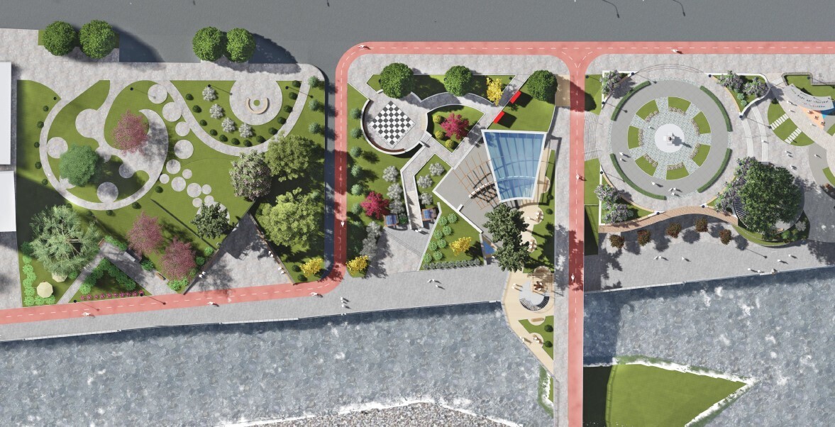 Площадки отдыха, спорта, плескательные бассейны и детские площадки разместятся регулярно на всем протяжении набережной, создавая комфортную среду для всех возрастов и всех категорий горожан. По набережной намечено разместить 5 туалетов, спрятанных в рельеф, но узнаваемых по архитектуре входов.