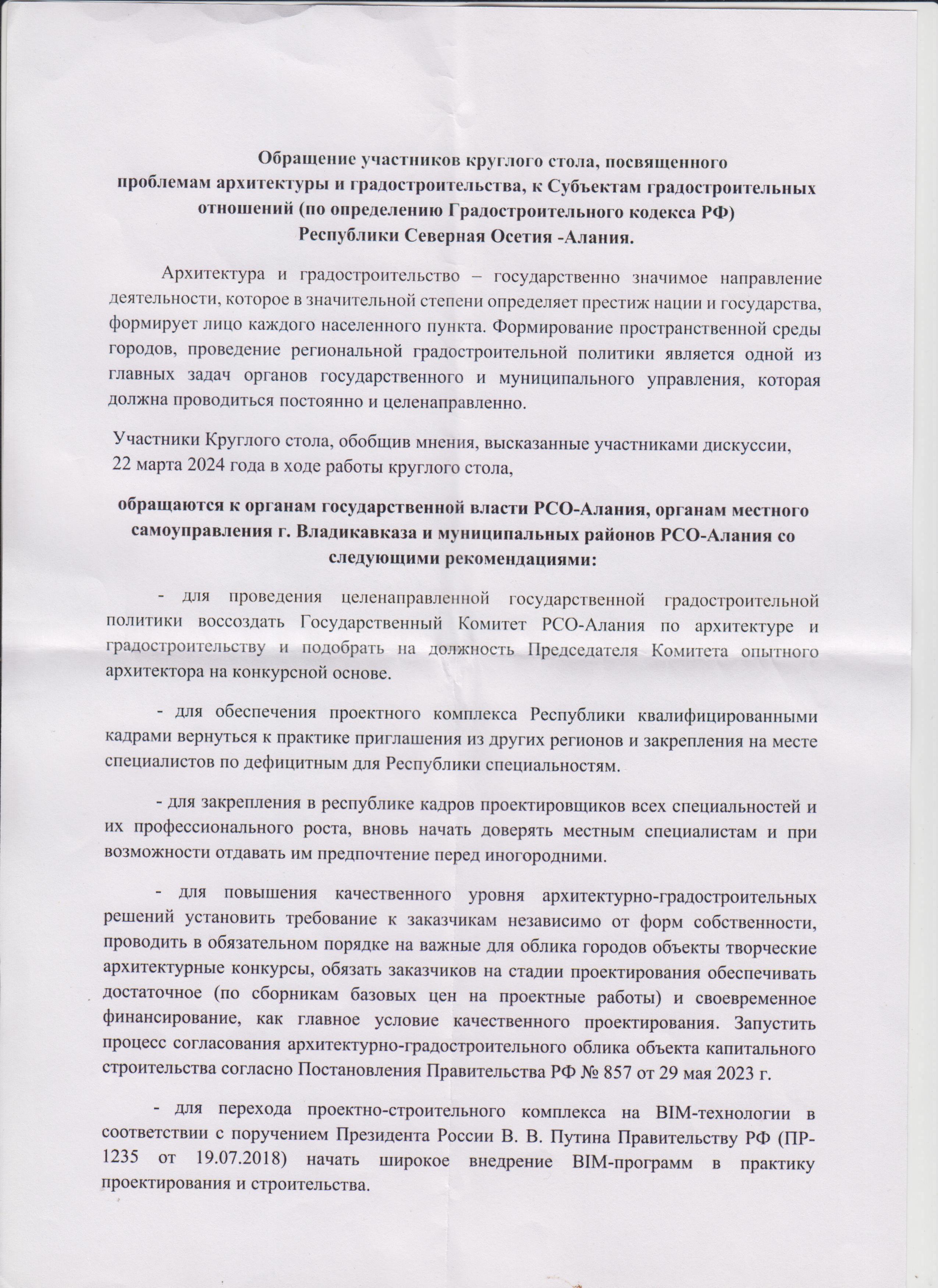 и так далее. Про упоминание точечных проблем в городе я даже не говорю. на встрече присутствовал глава Северокавказского Союза Архитекторов Юрий Степанович Логоватовский. его цитата: «Владикавказ надо спасать. Город превращается в… не знаю сказать, что».