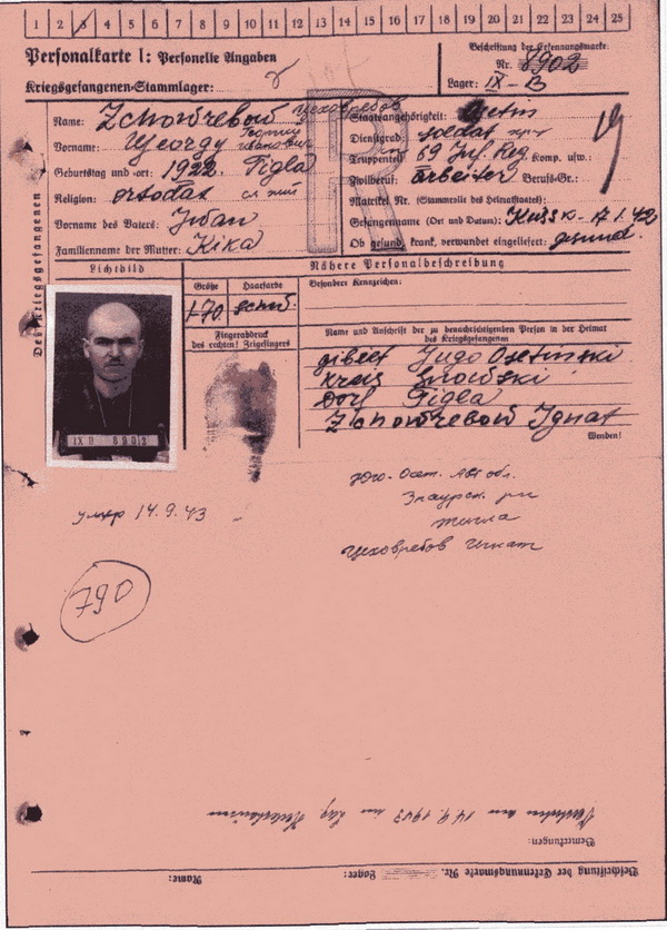 Интересная деталь - фашисты сохранили досье и фотографию Цховребова Георгия, попавшего в плен и умершего в лагере в Германии. Вот уже действительно немецкая педантичность.