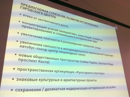 в последнее время зазвучала идея создания во Владикавказе некоего "творческого кластера", ну и формирование облика Владикавказа как культурной столицы региона. об этом говорили позавчера на последней встрече архдесанта. ктстати, участники архдесанта, приглашенные архитекторы за три дня смогли создать общую модель развития Владикавказа, презентация была очень интересной.