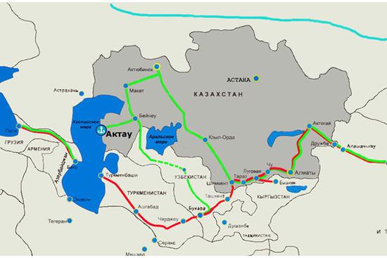 Из Азербайджана через каспийские паромные переправы (Баку – Туркменбаши, Баку – Актау) маршрут ТРАСЕКА выходит на железнодорожные сети Туркменистана и Казахстана, транспортные сети которых связаны с направлениями в Узбекистане, Кыргызстане, Таджикистане и достигают границ с Китаем и Афганистаном, тогда как с Ираном страны Центральная Азия имеет как сухопутное ,так и морское сообщение.