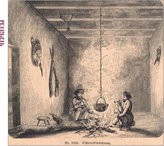 Иллюстрация: Lankenau H. Убранство черкесского дома. 1877. Из книги Б. Едиджа "Черкесы (адыги)  в рисунках европейских художников XVII -XIX веков". Майкоп, 2009.