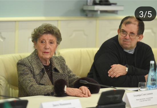 На встрече с Главой Адыгеи М. Кумпиловым. Эльвира Сангуанини, вице-президент "Дома Солнца" и Джермано Марани, профессор философии.